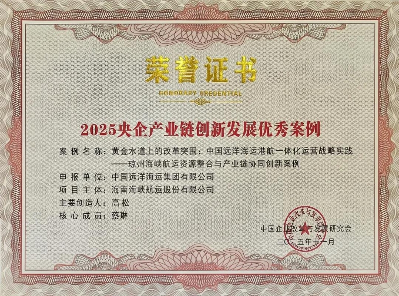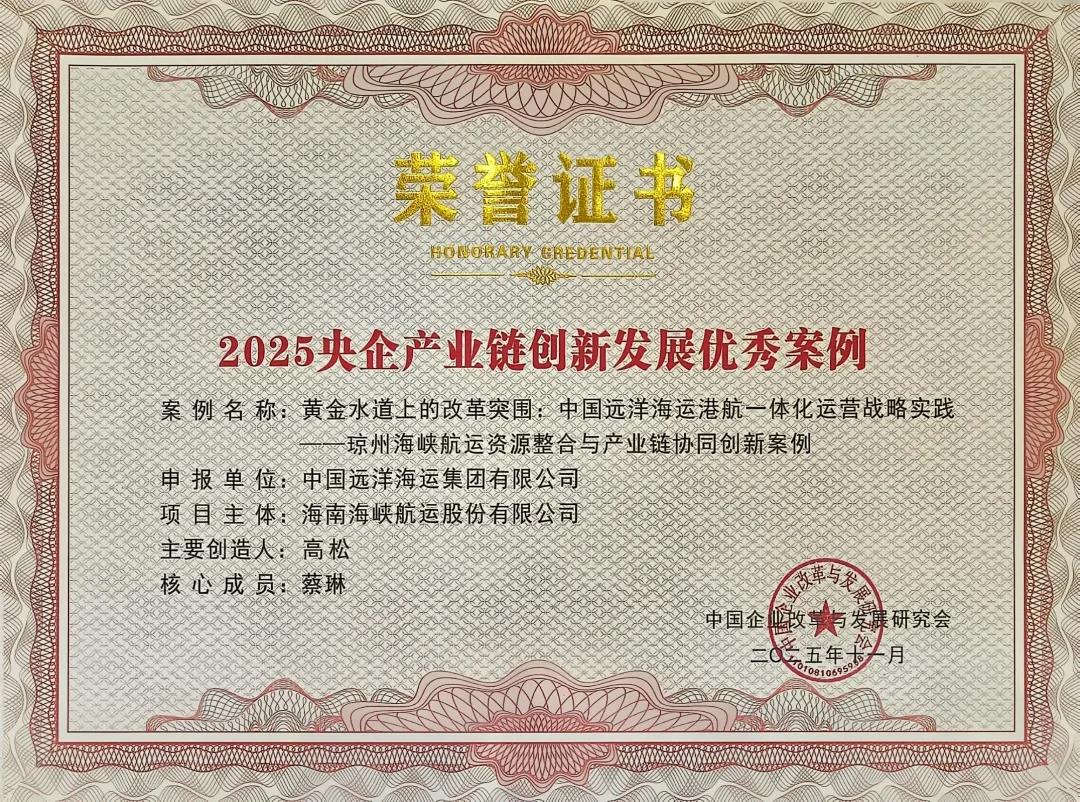 | 荣耀加冕!“琼州海峡航运资源整合与产业链协同创新案例”获评国家级优秀案例! | |||||||